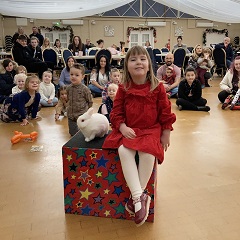 Of course, one of the highlights of my show is Snowy the rabbit. After the children have been amazed by the magic tricks, Snowy makes his grand appearance – to the delight of everyone!