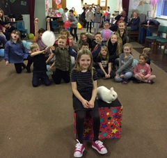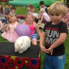 I offer a complete children’s entertainment package that combines professional magic, fun party games, lively music, balloon modelling, prizes, and even a special appearance from my rabbit, Snowy. My shows are interactive, meaning the children don’t just sit and watch – they become part of the magic.